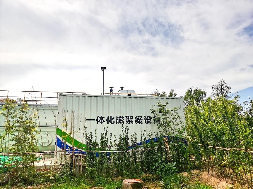 其中,前端預處理工藝環節采用了我司的磁混凝沉淀一體化設備,該設備安裝在人工淺層濕地的入水口處,與濕地聯合對污水處理廠排放的一級A標準出水與泄洪溝污水進行深度凈化處理,凈化后的水質指標主要指標優于地表四類水,最終排入瀉湖。